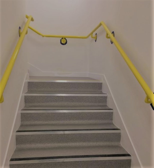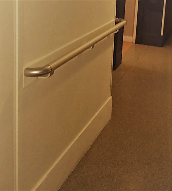 Barres d'appui, plans inclinés pour fauteuils roulants, rampes d'accès, etc.